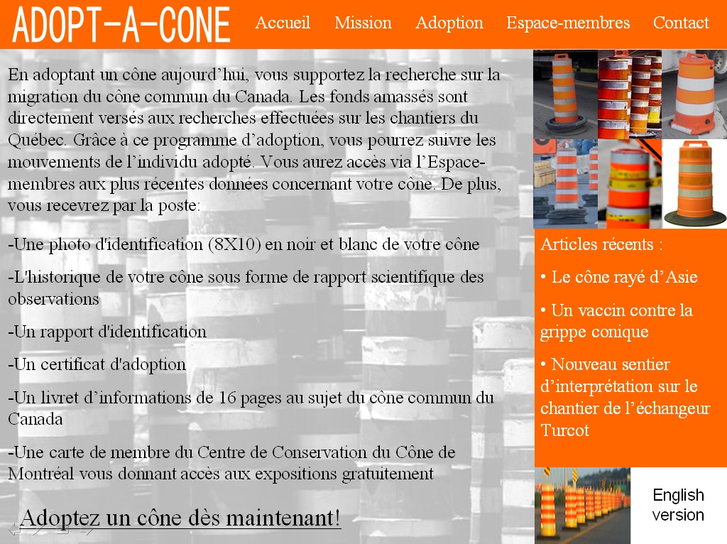 Quand je lui ai annoncé que j’avais un site Internet, un de mes amis m’a demandé si j’avais donnée vie à une idée que j’ai eue il y a plusieurs années : Adopt-A-Cone. À la demande de cet ami, je vous présente Adopt-A-Cone.