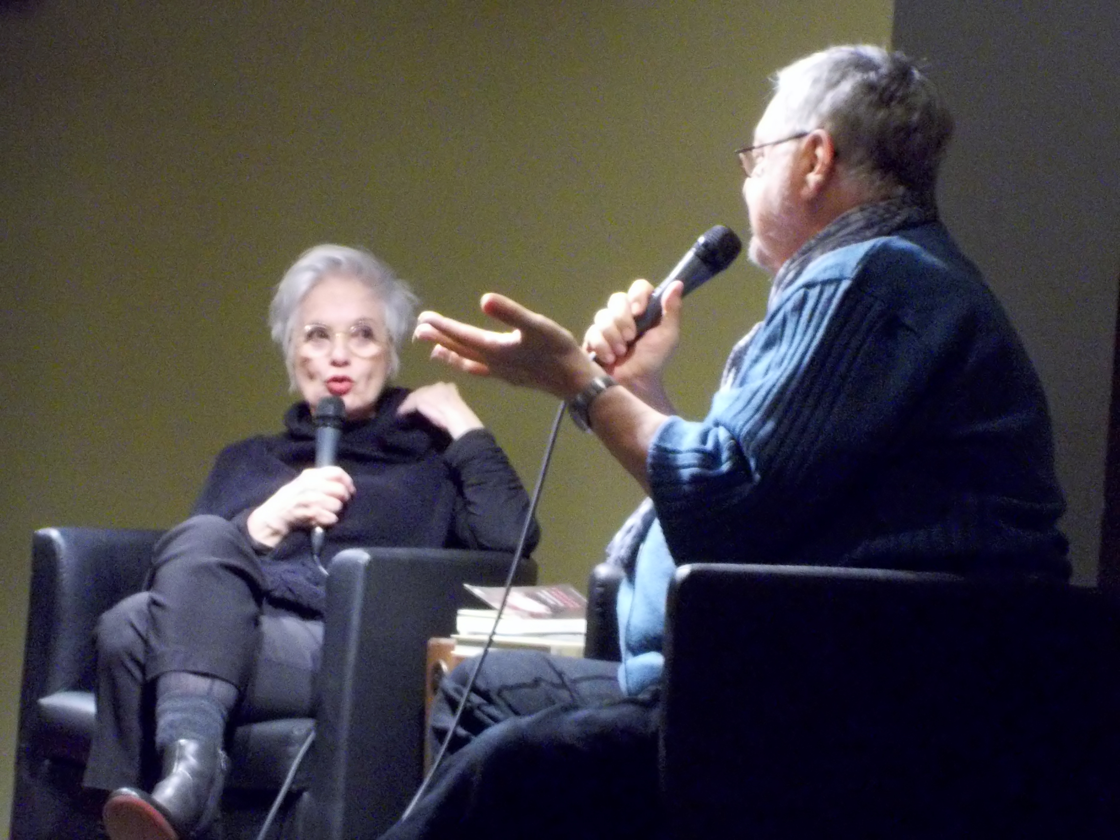 Amie de longue date de Michel Tremblay, la comédienne Louise Latraverse est une grande admiratrice de son œuvre. « Je crois que j’ai vu tout son théâtre, dit-elle. […] J’ai été tellement bercée, bouleversée, tout ce que vous voulez, par ses personnages, par son théâtre ! » On sent que Tremblay et Latraverse sont à l’aise ensemble, ce qui crée une ambiance sympathique dans la salle, encourageant les personnes présentes à s’exprimer au micro et à poser leurs questions à ce monument de la littérature québécoise qu’est Michel Tremblay (d’ailleurs, Louise Latraverse confie qu’en l’absence de l’écrivain, ses amis le surnomment « Le Monument »).