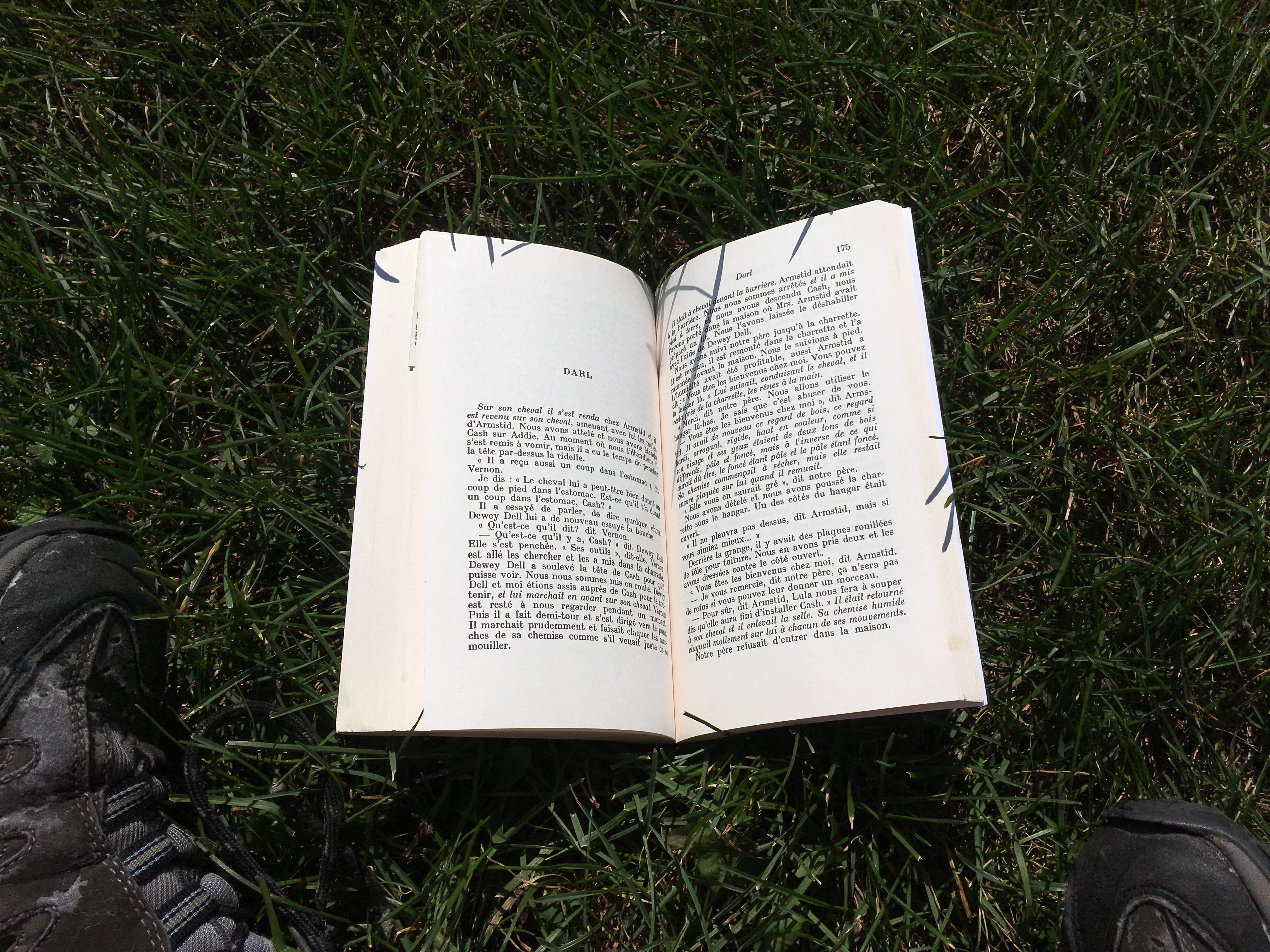 Pour ma neuvième journée d’écriture, je suis une fois de plus partie marcher. Je suis allée à la bibliothèque Langelier à pied pour participer au deuxième atelier donné par Joël Casséus dans le cadre de sa résidence littéraire. Je suis passée par le parc Maisonneuve, où j’ai dîné, écrit une scène de 348 mots pour mon roman et poursuivi ma lecture de Tandis que j’agonise de William Faulkner.